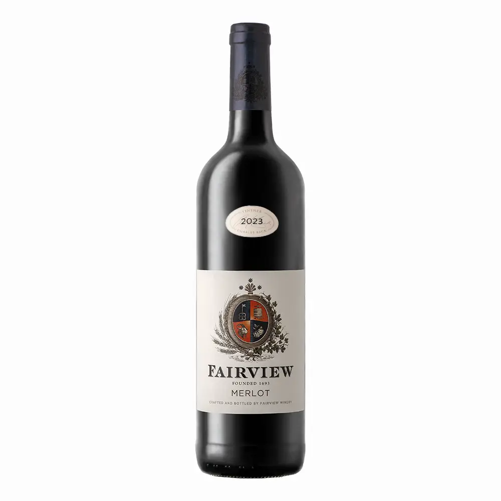 Fairview Merlot 2023 is crafted from Stellenbosch and Darling vineyards influenced by cooling maritime conditions. Grown in koffieklip gravel and decomposed granite soils, the grapes ripened slowly, delivering fresh fruit and balanced structure.